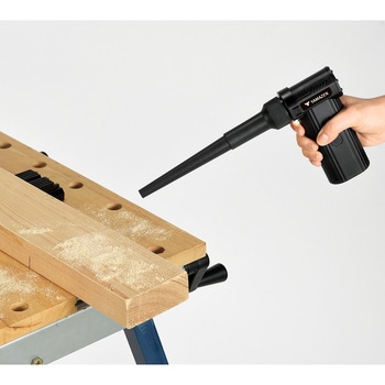 本製品はノズルを付け替えることで、デスクまわりなどの細かいごみの吹き飛ばしやビニール製品の空気入れ・空気抜き等様々な用途に使用することができます。風速は3段階で調節することができ、1回の充電でLOW:約100分、MID:約20分、HIGH:約9分の連続使用が可能です(標準ノズル取付け時)。ブラシレスモーターを採用し、コンパクトながら大風量を実現しております。