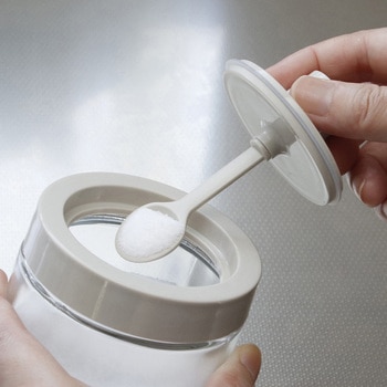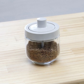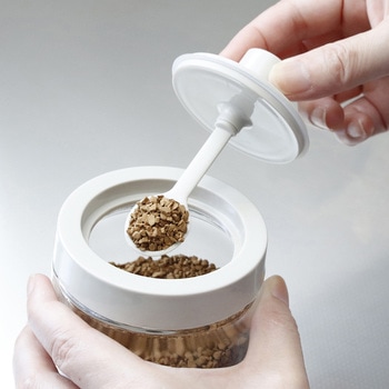 塩・砂糖・コーヒーに。フタと一体設計の調味料ポット。スプーンとフタが一体になっているので、落下を防止する。料理中でもサッと取り出せて手間を防ぎます。フタはゴムパッキン付き。密閉性と防湿性も◎衛生面も安心です。フタは分解して洗えて清潔。ガラス瓶なので色やニオイ移りしにくいです。