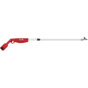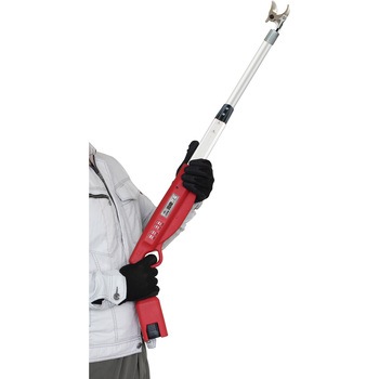 コードレスタイプのハイパワー高枝切鋏。26mmまでの太枝を0.5秒でカットできるハイパワー設計。身近な剪定から本格的な太枝まで幅広く快適に作業できます。ハンドルは傾斜をつけたピストル形状の細身グリップで高所を狙いやすく負担も軽減されます。バッテリー1本で約2000本の切断が可能で広範囲の作業も可能(使用状況により異なります)