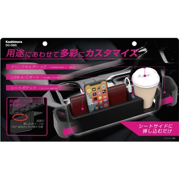 用途にあわせ多彩にカスタマイズ!シート横に増設できる収納ポケット&ドリンクホルダー USB-A/Cポート付。シートの横に収納ポケットとドリンクホルダーを増設。シートの隙間に挿し込むだけの簡単取り付け。スマホ/タブレット等を充電できるUSBポートを搭載。