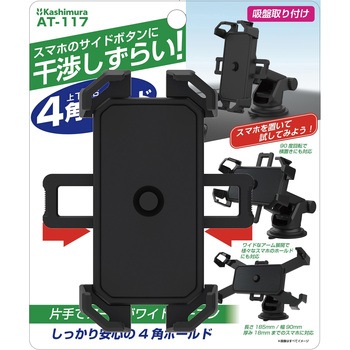 スマホのサイドボタンに干渉しにくい4アームスマホホルダー。