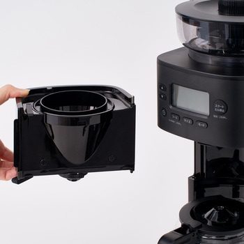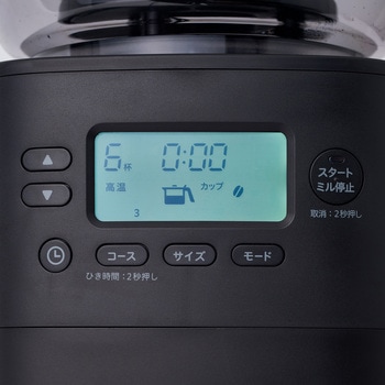 仕様コース・テイスト選択:高温/低温、ミル方式:コーン式、ミル粒度:細挽き~粗挽き(無段階調節可能)、保温機能(分):30、抽出方式:ドリップ方式セット内容本体、お手入れブラシ、ステンレスフィルター、取扱説明書(保証書)質量(kg)4.1(付属品除く)色ブラックタイプサーバー:ガラスサーバー周波数(Hz)50/60電源(V)交流100消費電力(W)750コード長さ(m)1.2機能蒸らし機能、豆・水の計量不要、じかマグ、ミルのみモード、タイマー予約機能、豆容器(ホッパー)、給水タンク取り外し・丸洗い可能、ミルお手入れモード、サーバー検出あり寸法(幅W×奥行D×高さH)(cm)16.6×27.3×42.1(サーバー含まず)適合フィルターステンレスフィルター、ペーパーフィルター(別売・市販品)、チタンコーティングフィルター(別売)水量(L)最大使用:0.83内容量1個