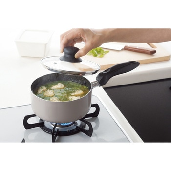 鍋内側に焦げ付きにくいマーブルコーティングを施したお手入れしやすいガス火コンロ専用の片手鍋です。調理中の様子が分かりやすいガラス蓋を採用。深さのある16cm鍋はちょっとラーメンを作るにも便利。カレーやシチューなど煮込み調理にもピッタリです。