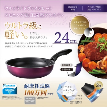 ウルトラ級に軽い!側面を薄くしたスピニング加工で驚きの軽量化を実現。内側は焦げ付きにくいダイヤモンドコーティングを施し、焦げ付きにくくお手入れも楽々。丈夫なフチ出しフランジ加工で変形しにくく長くご使用いただけます。調理の量やお好みに応じて選べる22cm~28cmまでのサイズを展開。