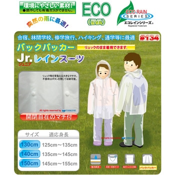 リュックの上から着用できる背中に大きな開閉マチ付簡易レインウェア! 本体一体型フード+スーツタイプ(上下セット)・本体一体型フード ・胸ポケット付き ・バックパッカータイプ ・環境にやさしいECO素材(燃やしても有毒ガスが出ません)使用