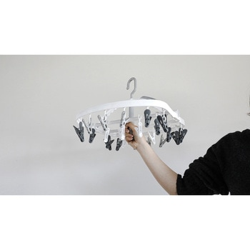 ひとりぶんの下着や靴下などの小物干しにちょうどいい「ランドリーハンガー24ピンチ」ドアなどに引っ掛けられる部屋干しフックが付いているので、日中外出が多い方にもぴったりです。
