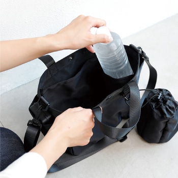 ペットのお散歩に必要なものをまとめて入れられる撥水性の高いナイロン素材の「NOALIKE うんちバッグ付きお散歩バッグ」着脱可能なミニバッグが付き
