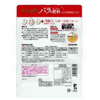 ▼バラの生育に必要な成分をバランス良く配合し、さらに有機成分を配合した緩効性肥料です。▼リンサンを多く含み、根の張りを良くする。また、株を丈夫にし、花がたくさん大きく咲きます▼魚粕類を主体とした有機成分を配合。微量要素やアミノ酸を含み、花・葉色の色つやを良く仕上げる効果がある。
