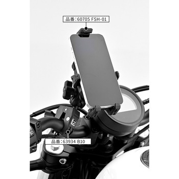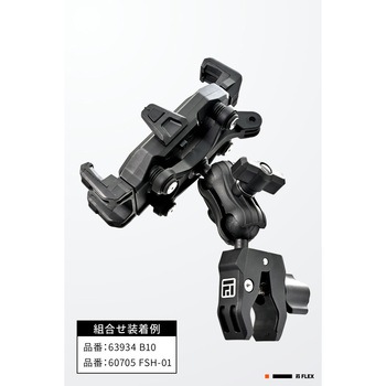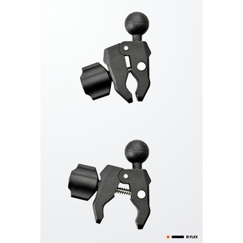 スマートフォンホルダー フレックス FSH用 オプション品。工具不要で取り外しが可能なベースマウント。ネジ式でしっかり固定でき、取り外しもスムーズ。Φ12ー35mmまでの幅広いハンドル径に対応し、さまざまな車種に取り付け可能。