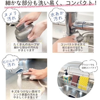 ナイロンとポリエステルの極太繊維の生地に特殊加工を施した丈夫な素材を貼り合わせたシンク洗い。極太繊維のたくさんのループがやさしく効率的に汚れをかき落とします。邪魔になりにくいコンパクトサイズで蛇口周りなどの細かい部分もさっと洗いやすく、収納にも場所をとりません。