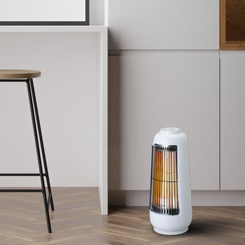 省スペースでワイドに暖かいミニカーボンヒーター。コンパクト設計。持ち運びに便利な取っ手付き。