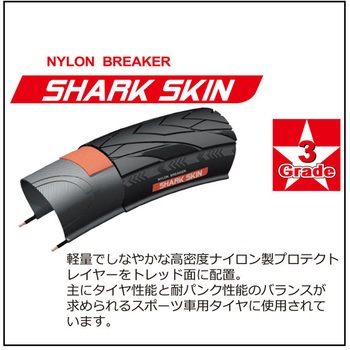 シャークスキンの耐パンク性能を上げ、転がり抵抗の低さ、グリップ力、重量、すべてに満足できます。