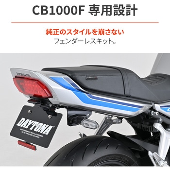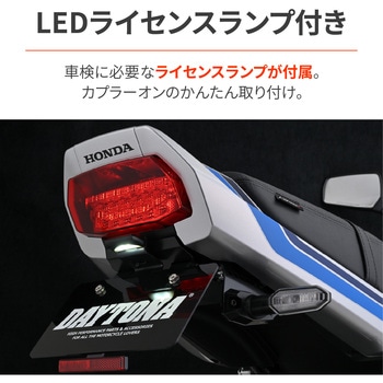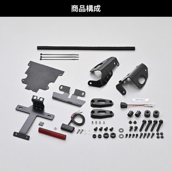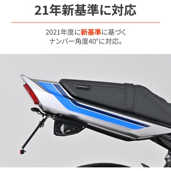 スタイリッシュなリア周りを演出するフェンダーレスキット。車種専用設計だからスマートに装着できます。ナンバー取付角度は2021年度新基準をクリアした40°に設計。ウインカーは純正を移設して、そのまま使用できます。ナンバーを照らす保安基準適合の広角LEDライセンスランプとスリムリフレクター付き。