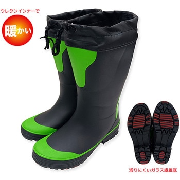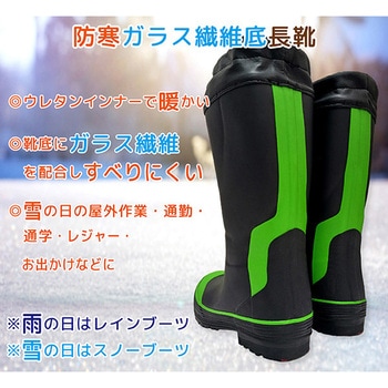 *ガラス繊維配合の靴底で冬道に強い!*冬暖かい4mmウレタンインナー。*カバー付きで雪かき等の作業時に雪・水滴などが入りにくい。*筒回りがゆったり履きやすいセミ胴太仕様。*雨の日はレインブーツ、雪の日はスノーブーツとして使える。