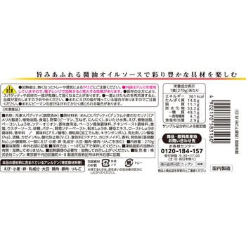 加熱後は熱くなったトレーや蒸気によるやけどにご注意ください。外装はアルミを使用していますので電子レンジで加熱すると発火する危険があります。保存の仕方によりスパゲッティのや具材の一部が乾燥して固くなることがあります。一度とけたものを再冷凍すると品質が変化しますのでおやめください。まれにえびの殻が残っている場合がありますのでご注意ください。まれにピーマンの皮がはがれてかたく感じられる場合があります。