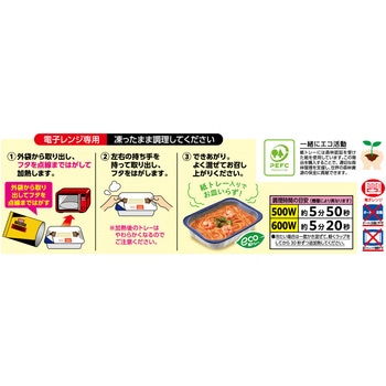 加熱後は熱くなったトレーや蒸気によるやけどにご注意ください。外装はアルミを使用していますので電子レンジで加熱すると発火する危険があります。保存の仕方によりスパゲッティの一部が白く乾燥して固くなることがあります。一度とけたものを再冷凍すると品質が変化しますのでおやめください。加熱中内フィルムが破裂しないように数カ所に空気穴を開けてあります。