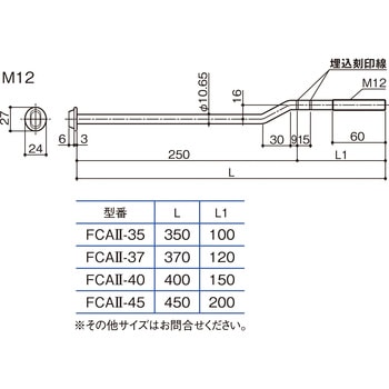 ※基礎コンクリートへの埋め込み長さはM12でアンカー笠下250ミリ以上、M16でアンカー笠下363ミリ以上必要です。