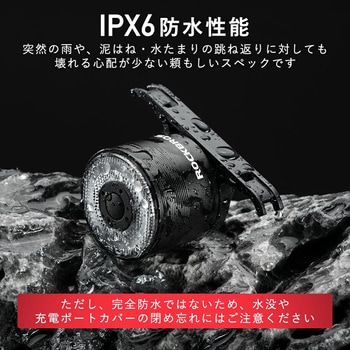 3段階の明るさ調整、低消費電力モードを備え、最大約80時間の長時間駆動を実現。IPX6防水仕様で雨天にも対応。珍しい青赤の交互点滅など多彩な発光パターンで、後方からの視認性を大幅にアップします。