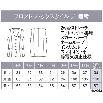 ※スタイリッシュだけではない、アイテムの組み合わせ次第でマニッシュにもフェミニンにも、幅広い印象を表現できる「THE BLACK CLOSET」シリーズ。選べる丈感やシルエットといったデザインをはじめ、機能性や快適さを追求した9つのアイテムでブラックコーディネートの「 新しい常識」を提案。ほどよい生地の厚みと軽さで、4シーズンどんな季節でも快適に過ごせるベスト。どんな季節にも対応します。静電気を防ぐ機能付き。接客時の「パチッ」を防ぎ、お客様に不快感を与えません。素材には、水や皮脂汚れがつきにくい2wayストレッチの快適素材を使用。2wayストレッチによるストレスフリーな着心地が魅力。ポリエステルの異なる縮みの糸を張り合わせることでストレッチ性を実現。経年劣化の心配がありません。また、一般的に染色加工場の使用廃水は公共の汚水処理施設に送り浄化しますが、環境に配慮し、染色加工場内でバクテリアを使用して汚水を浄化するシステムを採用しています。ハンドマーク防止加工も施しているので、水や皮脂汚れがつきにくく、落ちやすい素材です。