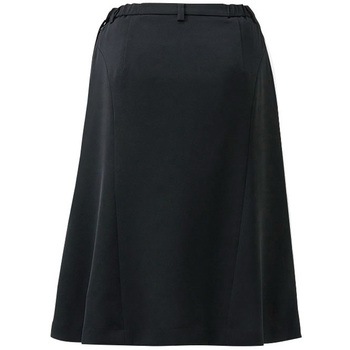 ※スタイリッシュだけではない、アイテムの組み合わせ次第でマニッシュにもフェミニンにも、幅広い印象を表現できる「THE BLACK CLOSET」シリーズ。選べる丈感やシルエットといったデザインをはじめ、機能性や快適さを追求した9つのアイテムでブラックコーディネートの「 新しい常識」を提案。ほどよい生地の厚みと軽さで、4シーズンどんな季節でも快適に過ごせるフレアスカート。どんな季節にも対応します。静電気を防ぐ機能付き。接客時の「パチッ」を防ぎ、お客様に不快感を与えません。素材には、水や皮脂汚れがつきにくい2wayストレッチの快適素材を使用。2wayストレッチによるストレスフリーな着心地が魅力。ポリエステルの異なる縮みの糸を張り合わせることでストレッチ性を実現。経年劣化の心配がありません。また、一般的に染色加工場の使用廃水は公共の汚水処理施設に送り浄化しますが、環境に配慮し、染色加工場内でバクテリアを使用して汚水を浄化するシステムを採用しています。ハンドマーク防止加工も施しているので、水や皮脂汚れがつきにくく、落ちやすい素材です。