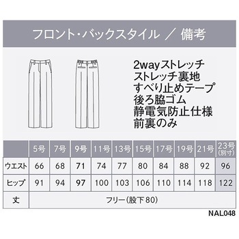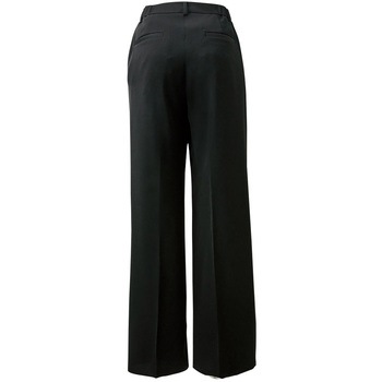 ※スタイリッシュだけではない、アイテムの組み合わせ次第でマニッシュにもフェミニンにも、幅広い印象を表現できる「THE BLACK CLOSET」シリーズ。選べる丈感やシルエットといったデザインをはじめ、機能性や快適さを追求した9つのアイテムでブラックコーディネートの「 新しい常識」を提案。ほどよい生地の厚みと軽さで、4シーズンどんな季節でも快適に過ごせるワイドパンツ。どんな季節にも対応します。静電気を防ぐ機能付き。接客時の「パチッ」を防ぎ、お客様に不快感を与えません。素材には、水や皮脂汚れがつきにくい2wayストレッチの快適素材を使用。2wayストレッチによるストレスフリーな着心地が魅力。ポリエステルの異なる縮みの糸を張り合わせることでストレッチ性を実現。経年劣化の心配がありません。また、一般的に染色加工場の使用廃水は公共の汚水処理施設に送り浄化しますが、環境に配慮し、染色加工場内でバクテリアを使用して汚水を浄化するシステムを採用しています。ハンドマーク防止加工も施しているので、水や皮脂汚れがつきにくく、落ちやすい素材です。
