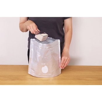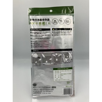 お米の冷蔵保存袋です。底マチ付きで自立し、鮮度保持の空気口付きです。