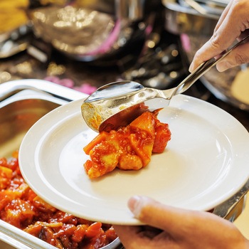 ビュッフェスタイル店舗・ホテル朝食時など様々なシーンで大活躍します。料理をすくい取り、取り皿の上でゆっくりハンドルを握ることで、周りを汚さずキレイに盛り付けられます。