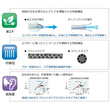 周囲の空気を吸い込み、エアを増幅させる省エア形のエアノズルです。