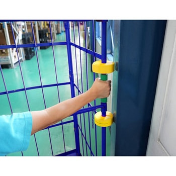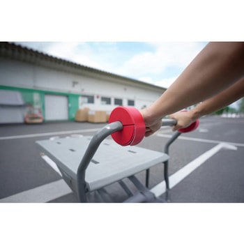 面ファスナーで設置、取外しが簡単です。危険な台車ハンドル角部での操作を制御し、ハンドルの内側を握るように徹底できます。適合ハンドル外径内であればさまざまな台車に対応し、付属のビスで簡単に取り付け、固定が可能です。