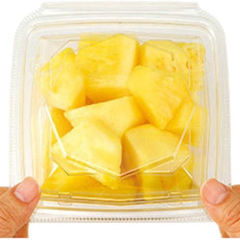 フードパック内嵌合で汁漏れしにくいカットフルーツ容器です。