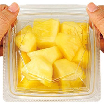 フードパック内嵌合で汁漏れしにくいカットフルーツ容器です。