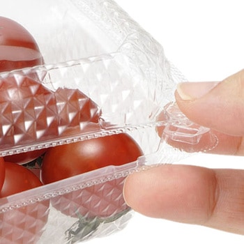 本体フタ一体型大容量ボタン嵌合青果用フードパックです。