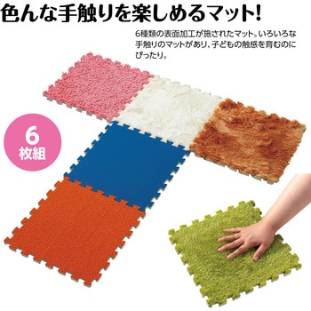 手触りいろいろ!感触のちがいを楽しめる6種類のマットセット!6種類の異なる手触りを楽しめる感触マットセットです。毛足の長いタイプから滑らかなタイプまで、さまざまな素材感を楽しめます。フワフワ・ツルツル・ザラザラなど多彩な質感が、子どもの触覚を刺激し感性を育てます。ジョイント式でつなげやすく、自由な形に組み合わせ可能です。保育園や家庭での感覚あそび・知育活動にぴったりです。軽くて扱いやすく、裏面は滑りにくい仕様で安全に使用できます。
