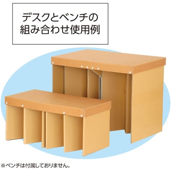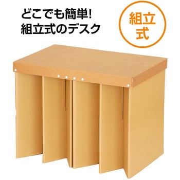 工具不要で組立ラクラク!折りたたんで収納できる段ボールデスク!工具不要で誰でも簡単に組み立てられるダンボールデスクです。イベント会場や仮設スペース、一時使用などに便利です。天板のパーツが収納ケースになっており、使用後は折りたたんでコンパクトに収納可能。ダンボール製ですので廃棄も簡単で、環境に優しい設計です。耐荷重:140kg、組立時間:約3~5分。