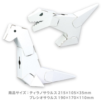 組み立て簡単!選べる2タイプの恐竜の貯金箱芯材!段ボール製の組立式恐竜型芯材です。ティラノサウルスとプレシオサウルスの2種類から選べ、組み立ては接着剤不要で簡単。ねんどを盛り付けたり、絵の具で着色してオリジナルの恐竜をつくれます。貯金箱として使えるので、工作後も実用的に楽しめます。学校教材やイベント工作にもおすすめの使いやすい段ボール素材です。【用意するもの】絵の具、マーカー、かみねんど