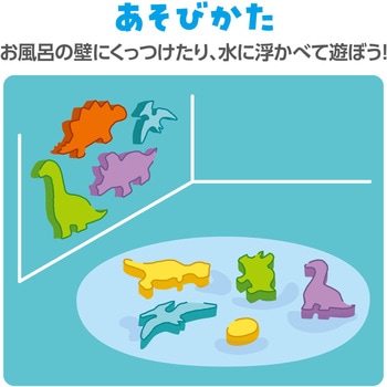 お風呂で楽しい!ぷかぷか恐竜おもちゃ!お風呂やプールで遊べる恐竜モチーフのスポンジトイです。同じ形や色を探したり、壁にくっつけたりして親子で楽しく知育あそびができます。土台がついているので、バランスゲームとしても楽しめます。カラフルなEVA素材で、子どもの想像力と観察力を育てる楽しいお風呂トイです。