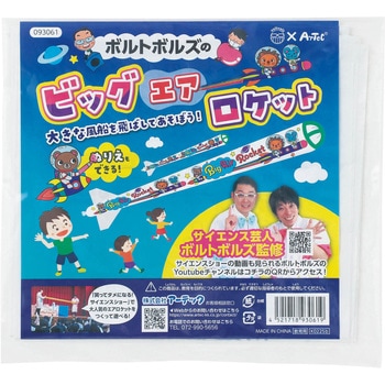 サイエンス芸人ボルトボルズ監修!大迫力のビッグエアロケット!サイエンス芸人ボルトボルズが監修した、空気の力で飛ばすビッグエアロケットです。筒状の風船に空気を入れて飛ばす仕組みで、空気の力を楽しく体験できます。ロケット本体には塗り絵もできるので、科学実験と工作の両方を楽しめます。ワークショップやイベントの実験教材としてもおすすめです。