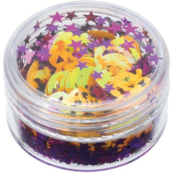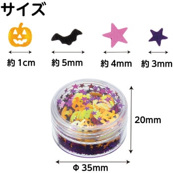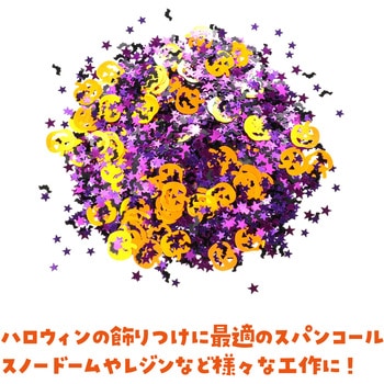 ハロウィンを彩る!ハロウィンモチーフのスパンコール!ハロウィンモチーフのかわいいスパンコールセットです。オレンジ・パープル・ブラックの定番カラーのカボチャやコウモリ、星などの形が入っており、キラキラと華やかに演出。デコレーションやスノードーム、レジン作品などさまざまな工作に使えます。