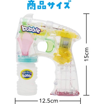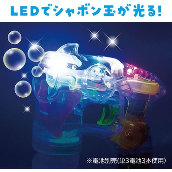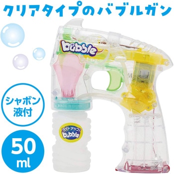 LEDでシャボンがきらめく!クリアタイプのバブルガンLEDライトでシャボン玉がきらめくクリアタイプのバブルガンです。LEDライトの輝きとともに、シャボン玉が幻想的に舞います。50mlのシャボン液付きで、すぐに遊べます。屋外イベントや夜の遊びにもぴったりです。【対象年齢】6歳以上