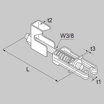 バネを採用し組み立てる部材が無いので施工が容易に行えます。W3/8ネジの採用によりH鋼をガッチリ固定します。既設全ネジが吊り下げられていても後付け施工が可能です。