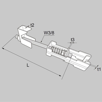 バネを採用し組み立てる部材が無いので施工が容易に行えます。W3/8ネジの採用によりH鋼をガッチリ固定します。既設全ネジが吊り下げられていても後付け施工が可能です。