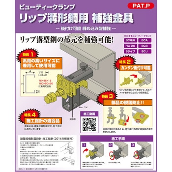 汎用の高いサイス(75x45x15、100x50x20)に兼用して使用可能です。ツメを掛けてボルト・ナットを締め込むだけの簡単施工です。金具に突起があるため、持ち運びの際に補強板の落下を防止します。本製品は、建築設備耐震設計施工指針に適合しています。
