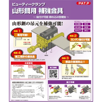 汎用の高いサイス(40幅、50幅)に兼用して使用可能です。ツメを掛けてボルト・ナットを締め込むだけの簡単施工です。金具に突起があるため、持ち運びの際に補強板の落下を防止します。本製品は、建築設備耐震設計施工指針に適合しています。