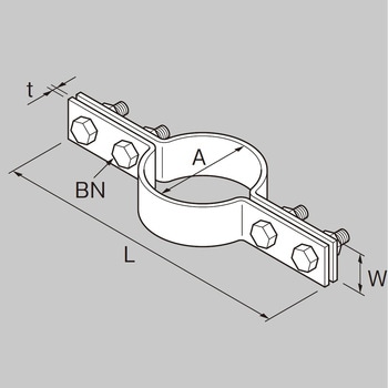 本製品はSGP配管用の床貫通立て配管の振れ止め支持金具です。