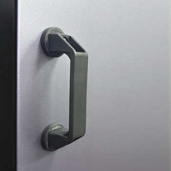 ・鉄製扉の開閉操作時に使用します。・磁石によって扉に吸着するため取り外し可能。・磁石全体をゴムのような柔らかい樹脂で包み込んでいるため、着磁面を傷つけず、扉の開閉ができます。・取手を扉面に対し、約45°傾けた状態でゆっくりと扉に当ててから、取り付け・取り外しを行って下さい。