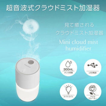 見て癒される「クラウドミスト」演出が魅力のUSB給電式加湿器です。超音波式を採用し、火傷の心配がなく、すぐにミストが出る安全・静音設計。