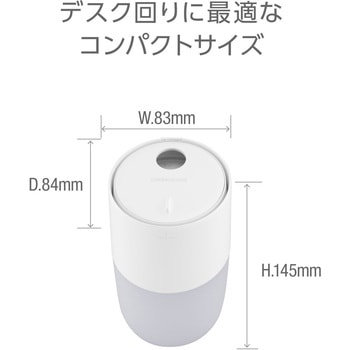 仕様アロマ対応:アロマウォーターのみ対応付属品専用USBケーブル、スポンジ×3本(うち1本は本体接続)、取扱説明書/保証書材質ABS、PP色グレー質量(g)約182消費電力(W)約2(5V/0.4A)寸法(幅W×奥行D×高さH)(mm)83×84×145タンク容量(mL)300保証期間6か月LEDランプあり (白色・オレンジ色・白色+オレンジ色) ※ボタンの長押し(約2秒)で点灯消灯と色を切り替え連続加湿時間(時間)連続モード 約4時間後に自動停止、クラウドミストモード 約8時間後に自動停止モード連続モード/クラウドミストモード加湿方式超音波式RoHS指令(10物質対応)対応加湿量(mL/h)連続モード:約40~50、クラウドミストモード:約5~10内容量1個