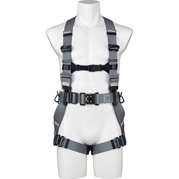 3つのフリーを搭載したタニザワフルハーネスST#573Aシリーズのワンタッチバックル作業ベルトタイプ(付属)になります。