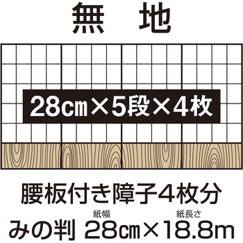 美しく貼れて、はがしやすいパルプ主体の障子紙です。無地タイプ。腰板付き障子4枚分。みの判。