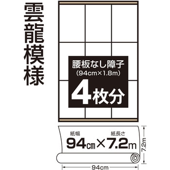 美しく貼れて、はがしやすい1枚貼りのレーヨン入り障子紙です。雲龍模様入りタイプ。腰板なし障子4枚分。